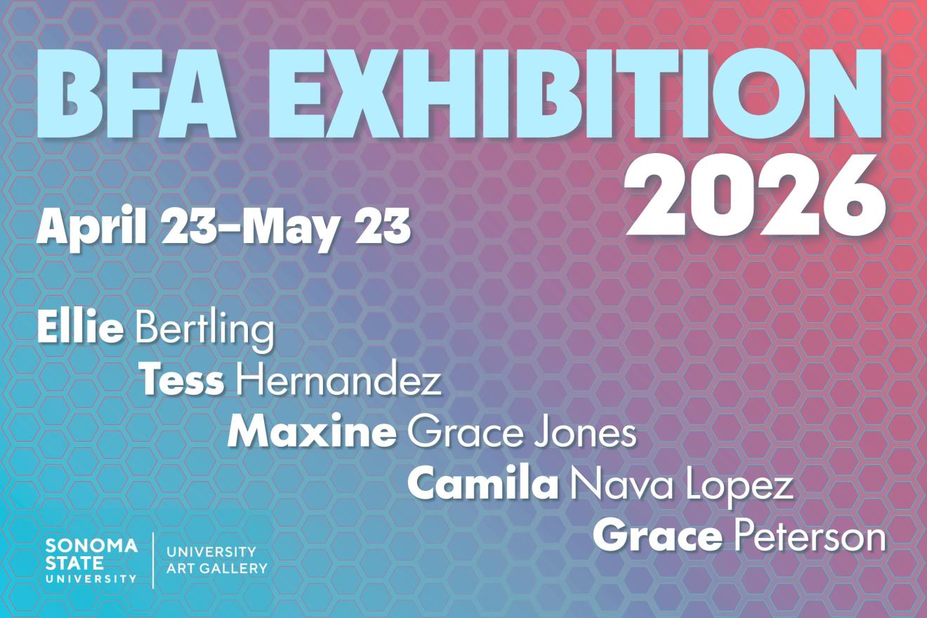 Each spring, the University Art Gallery proudly presents the Bachelor of Fine Arts (BFA) Exhibition, showcasing the work of Sonoma State University’s graduating BFA class. The 2026 BFA Exhibition will be on view April 23–May 23, 2026.